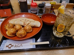 晩飯は「たこ八」の「ハイボールAセット(たこ焼きとイカ焼き)」